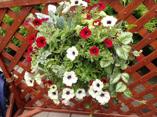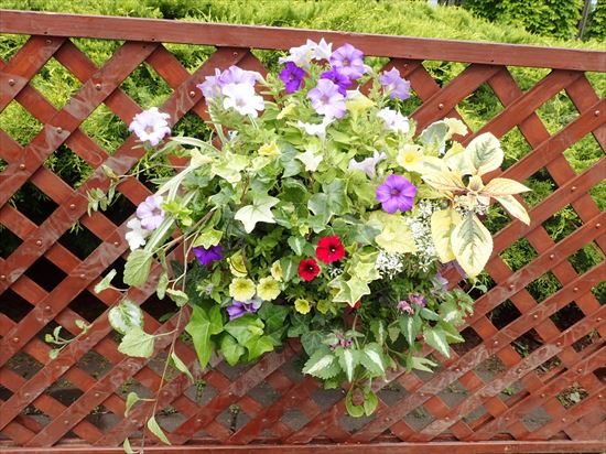 農試公園といえば、入り口付近に飾られているハンギングバスケット。今年も3台飾られています。