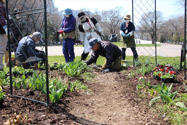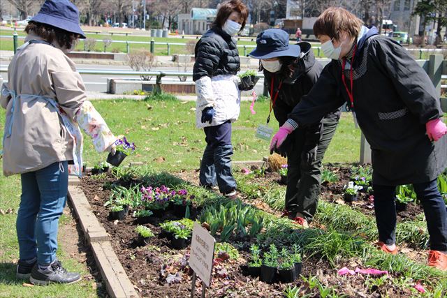4月21日(水曜日)、登録団体「ガーデニング リラの会 大通班」が大通西8丁目で花植えを行いました。