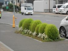 4年前から街路ますにコキアを植えて街のイメージづくりをしてきたそうですが、今年は昨年生育のよかった町内会から栽培方法を教わり、昨年生育の思わしくなかったところは施肥をするなどして生育改善を目指しました。