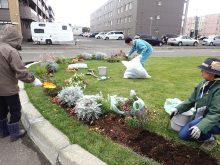 10月17日、あいにくの曇り空、やや肌寒い日でしたが、JR百合が原駅前ロータリーにある花壇で活動している「百合が原花壇を造り隊」の今シーズン最後の様子を取材してきました。