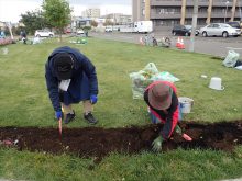 百合が原花壇を造り隊のメンバーのほか、近隣の住民や連合町内会の方なども参加していました。