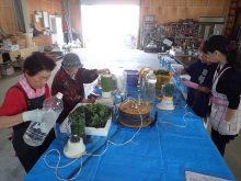 みんなの作品ができたところで、記念撮影をし、この後昼食時間に合わせて用意された手づくりのお赤飯、豚汁、いもサラダ、漬物、トマトやワラビ、まめの胡麻和えなどなど、みんなで一緒に食事をして親睦を深めました。