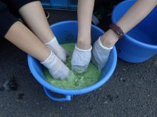 参加した子どもたちのなかから、「今年の自由研究は終わっているけど、次はこの藍の生葉染めを自由研究にしたいと思いました」と元気な意見がありました。