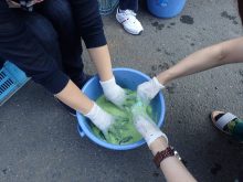 ある程度葉を集めたら、順番に生葉染めの作業に入っていきます。