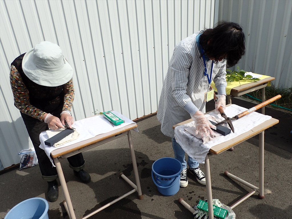 登録団体「花と緑のEGG」で園芸道具のお手入れ講座を実施しました(技術指導講師派遣)