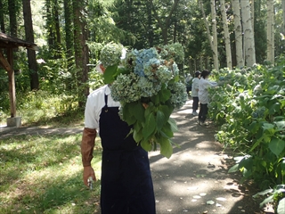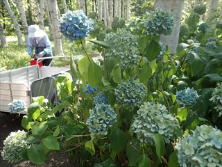 収穫するアジサイ 8月7日のアジサイ開花状況