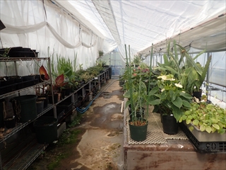 途中で珍しい植物が並んでいる温室を案内していただきました。