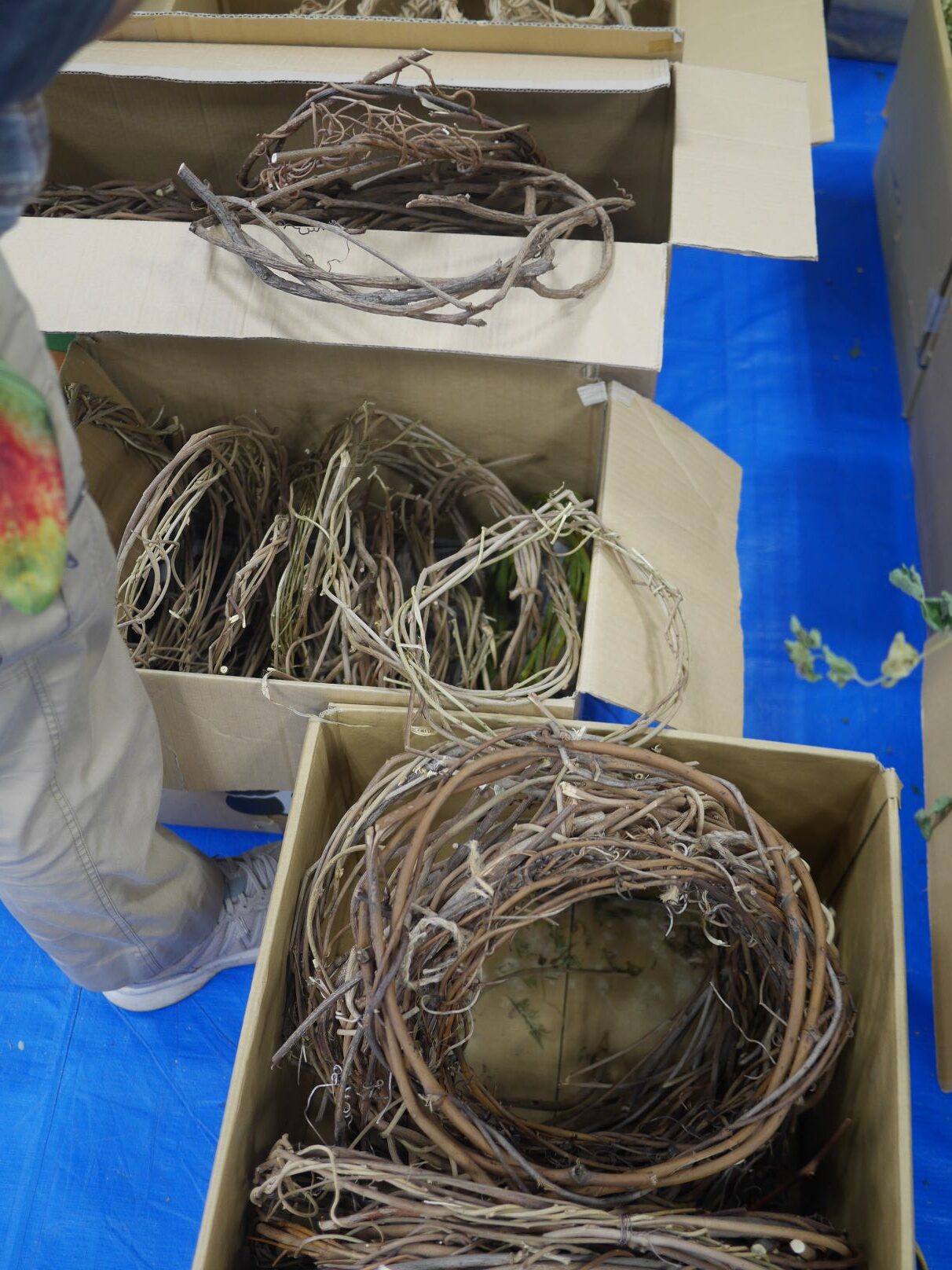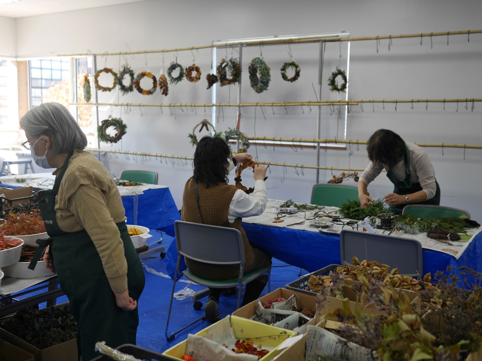 リースづくりは参加できるときに参加するスタイルで、取材時は2名の方がリースづくりに勤しんでいました。