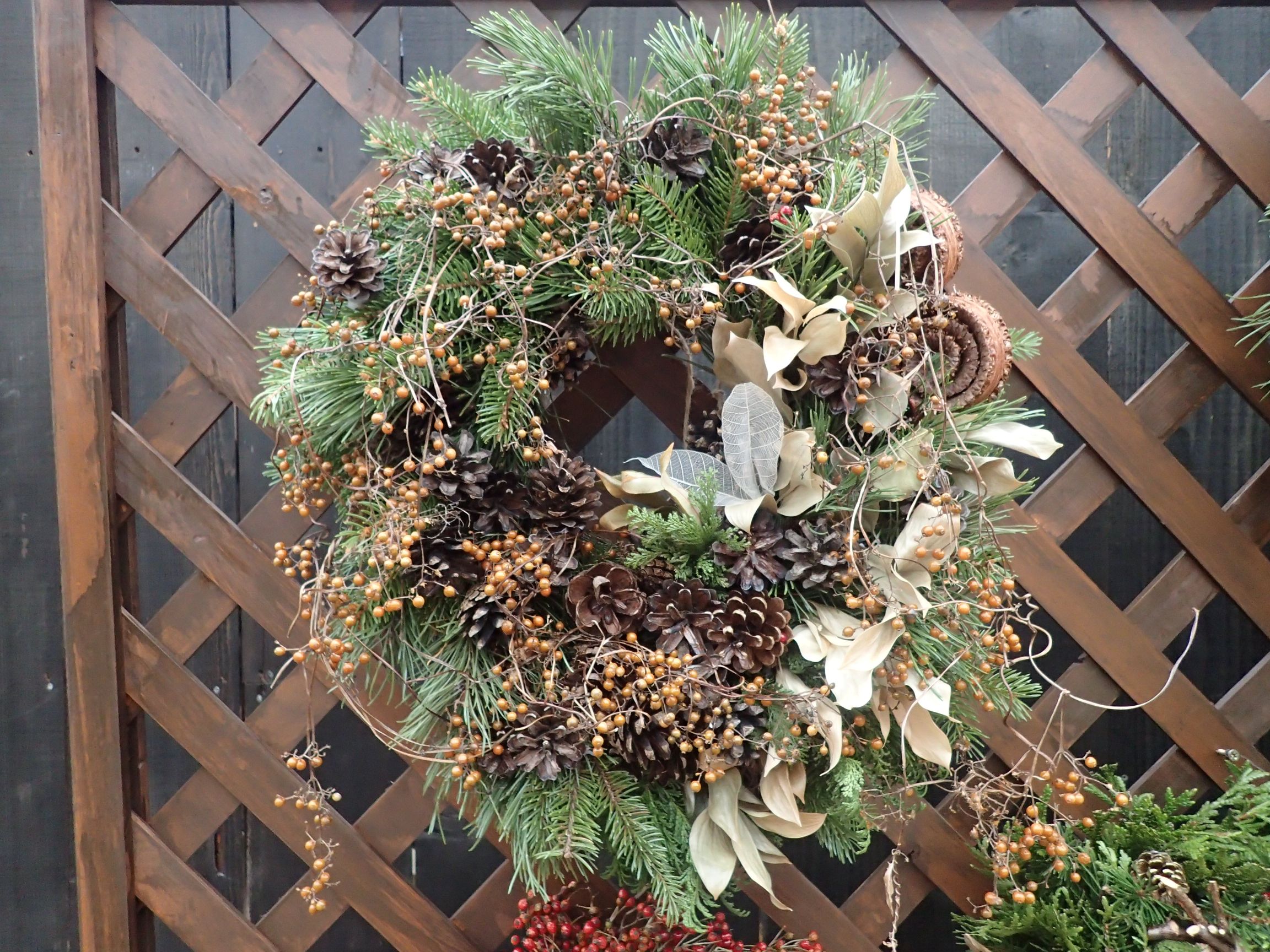 百合が原公園「クリスマスディスプレイ展~フローリストたちのナチュラルリース」開催中です