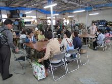 たくさんの方にご参加いただきましたので、受付時に整理券をお渡しして、順番に選んでいただくことにしました。テーブルいっぱいに並んだタネや苗を前に、みなさんワクワク。にぎやかに楽しく情報交換をしながら選んでいました。