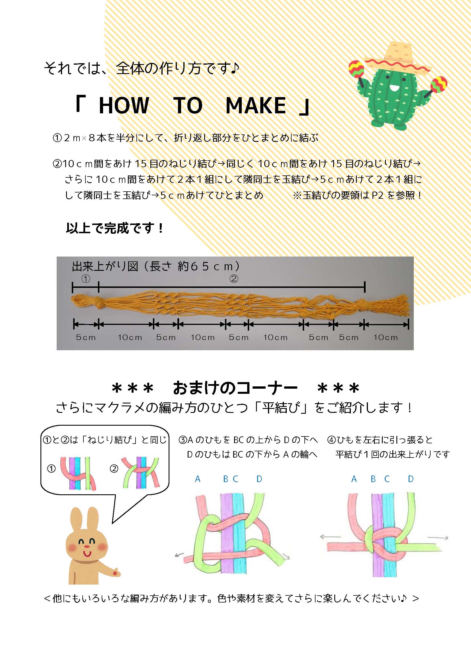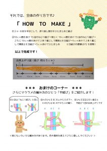 参考までに作り方の資料を添付します。色や素材を変えてアレンジしたり、お友達と集まってワイワイ作るのも楽しいですね。ぜひチャレンジしてみてください。(図をクリックすると大きくなります)