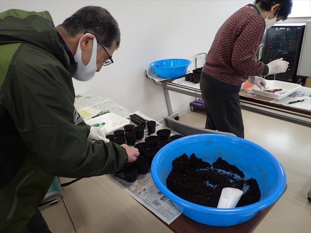 2月10日(水曜日)「種まき・育苗サポーター養成講座」第1回目の講義と実習を行いました。今回のサポーター養成講座には、以前受講された2人の方が実習のお手伝いで参加してくださいました。