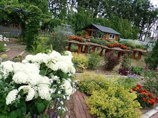 アナベルが咲いている様子 ガーデン周りの寄せ植え
