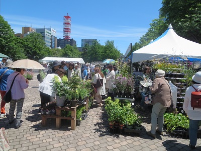 西7丁目の花市場では、多くのみなさんが花苗などを買い求めていらっしゃいました。