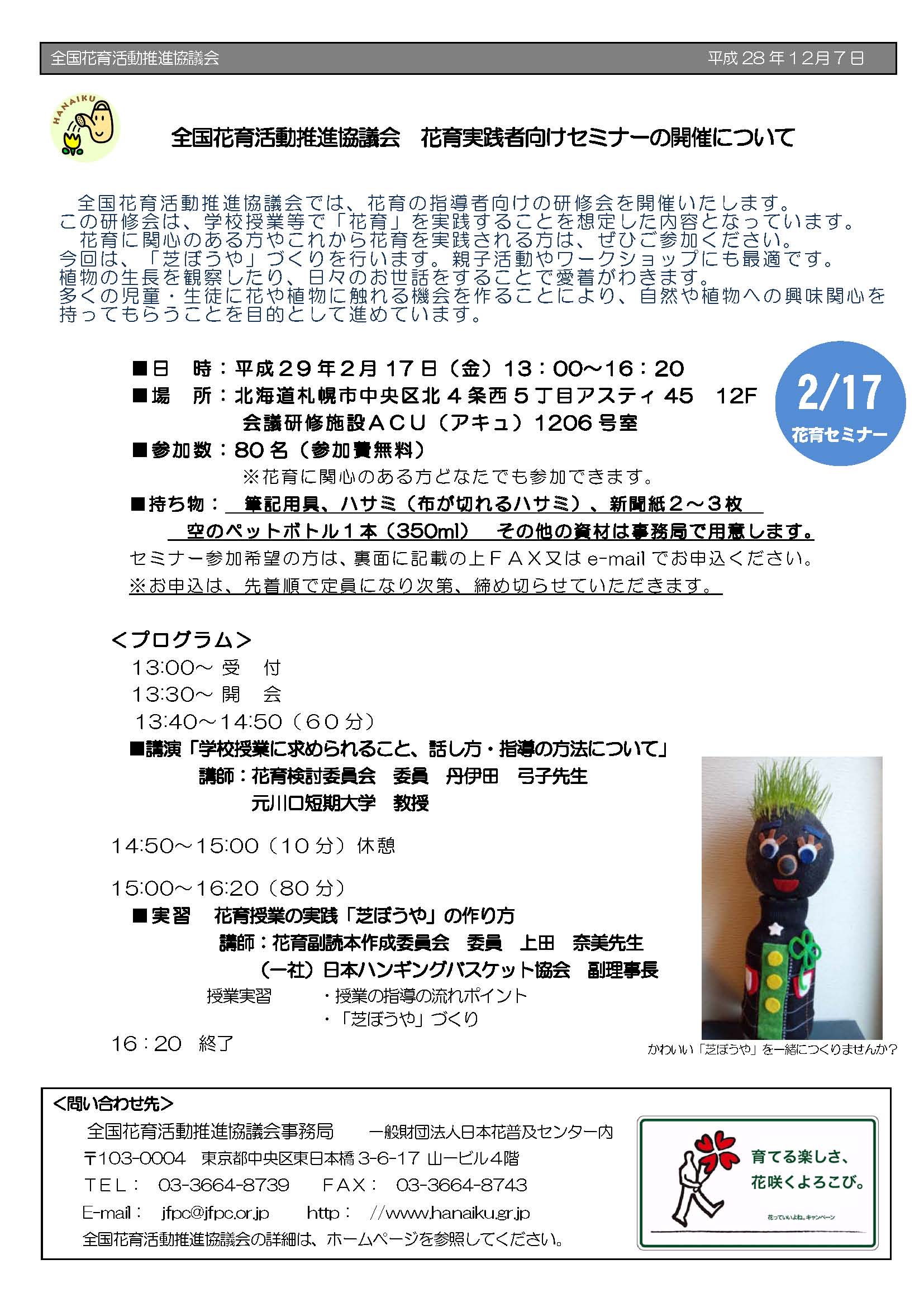 タウンガーデナーのNさんから、「花育実践者向けセミナー」の開催について、情報をいただきました。