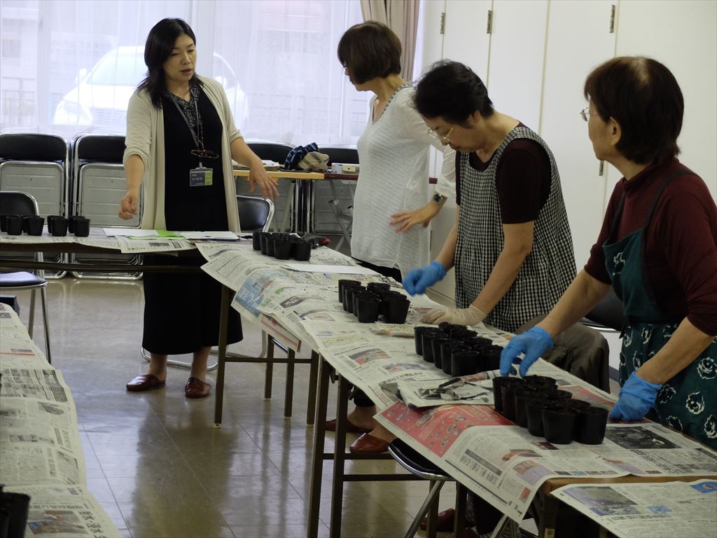 今回の講習会は、二十四軒にあるマンションの敷地内花壇に植える花を、自分たちで育てるという趣旨で開催されました。「花愛会(はなめかい)」の活動の一環です。