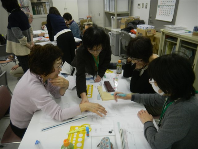 それぞれが考えてきたレイアウトを、班のなかで発表し、
