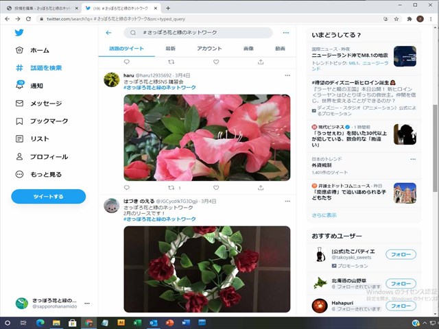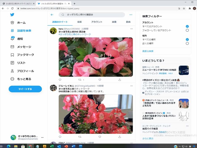 ツィッターで「さっぽろ花と緑SNS講習会」「#さっぽろ花と緑のネットワーク」で検索するとみなさんドキドキの初投稿が見られます。