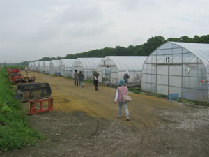 余湖農園には、たくさんのビニールハウスが並んでいます。