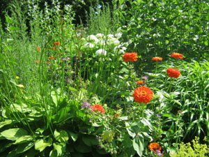 ほとんどが宿根草ですが、ひきしめ色としてのジニアなど、