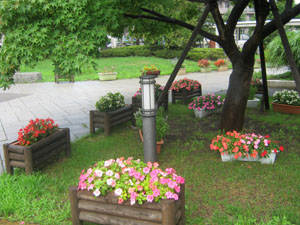 病院を訪れる人たちに喜ばれるきれいなコンテナや花壇を