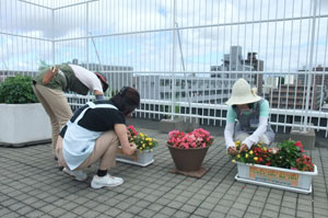 この日は、プランターの花がら摘みなどを行いました。