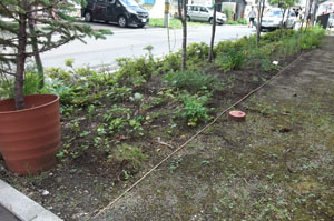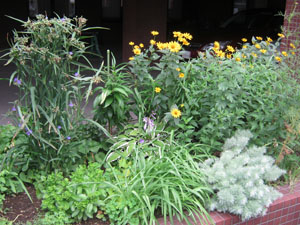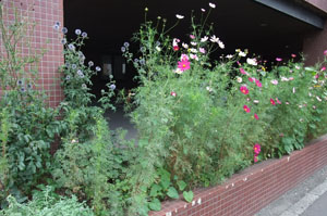 病院入口横の、ハーブなどを植えた花壇です。