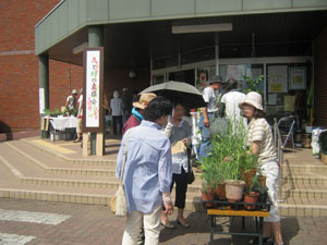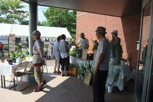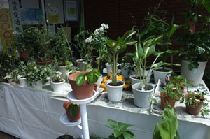 交換会に備え、たくさんの苗を並べました。中にはウコンなど珍しい植物も!