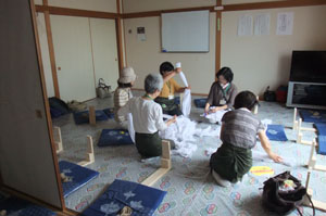 室内では、「裂き布ぞうり講習会」を企画し、メンバーが講師を務めました。