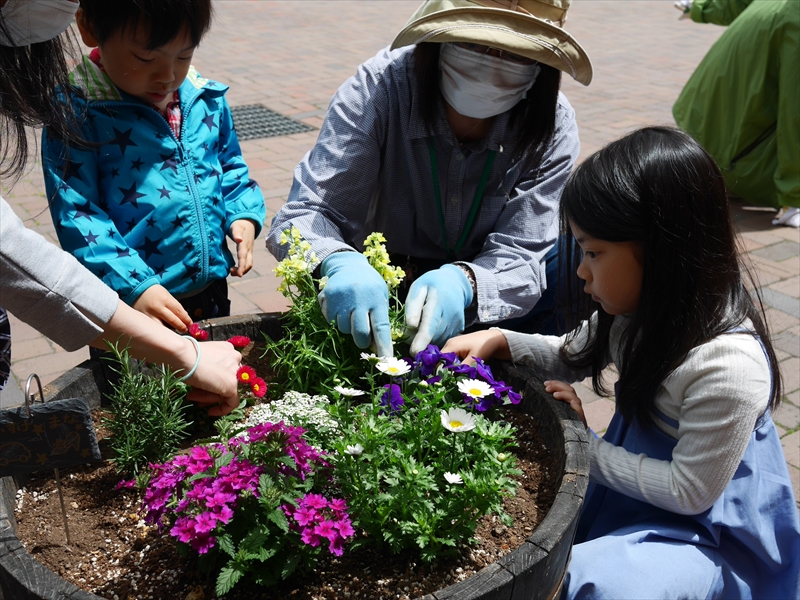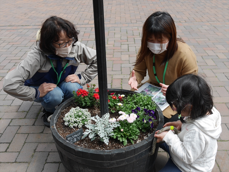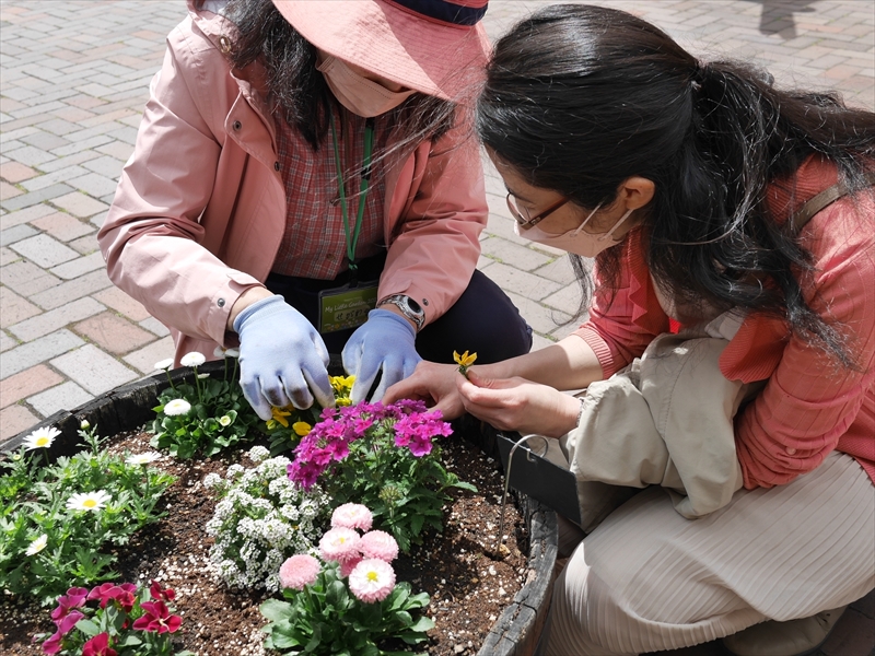 講師は、花と緑のネットワーク事務局の齋藤 聡子 が務め、有志のタウンガーデナーさん4名が参加者をサポートしました。