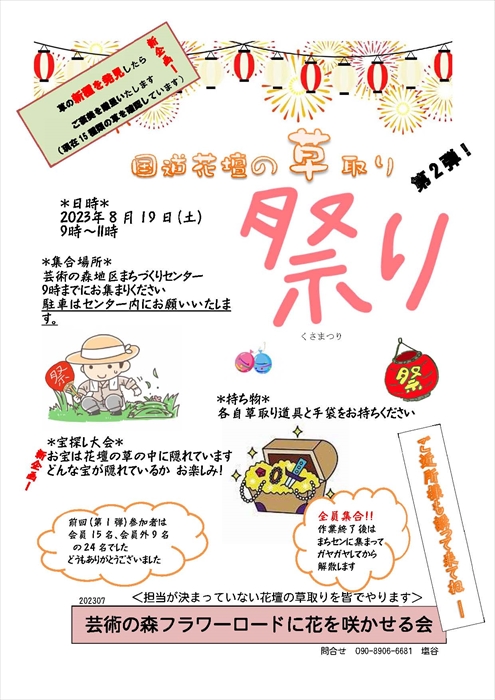 草祭りは下のようなチラシが地域内に掲示され、フラワーロードの会員だけではなく地域の方にも参加を呼びかけて行われています。