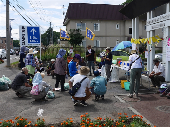 8月19日(土曜日)、登録団体「芸術の森フラワーロードに花を咲かせる会」が、地域の方と一緒にフラワーロードの除草をする「草祭り」を行いました。全長およそ3kmのフラワーロードのうち、担当者がいなくて草取りができていない花壇の草取りを参加者が4つのグループに分かれて行いました。