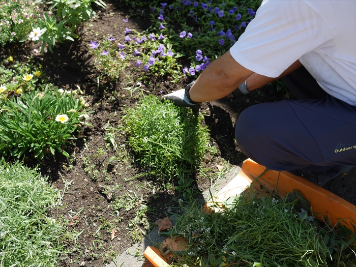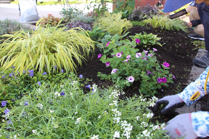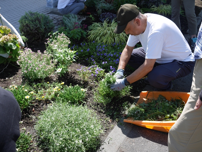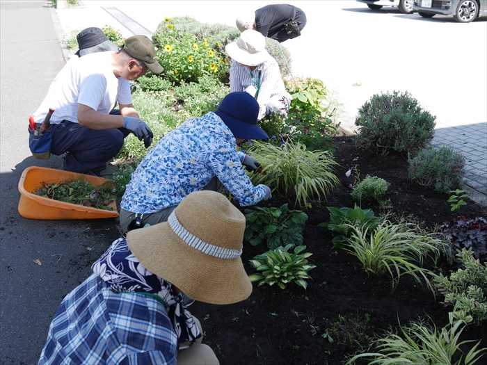 連日真夏日が続く中、7名が参加して花壇のメンテナンスを行いました。