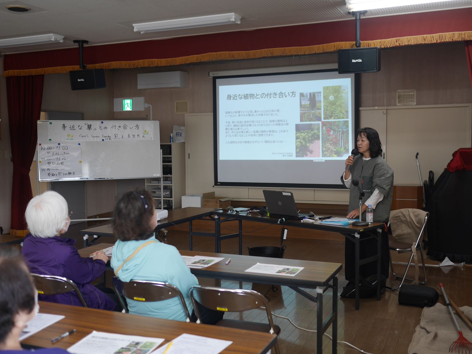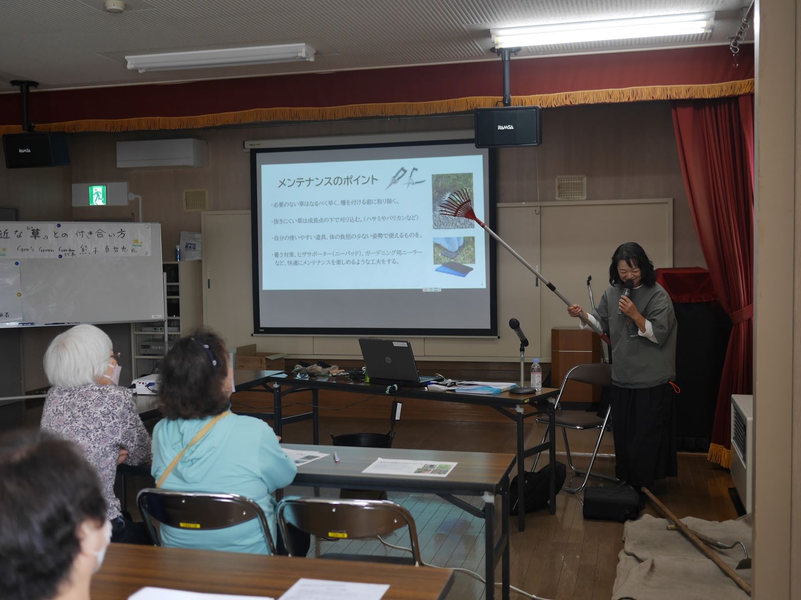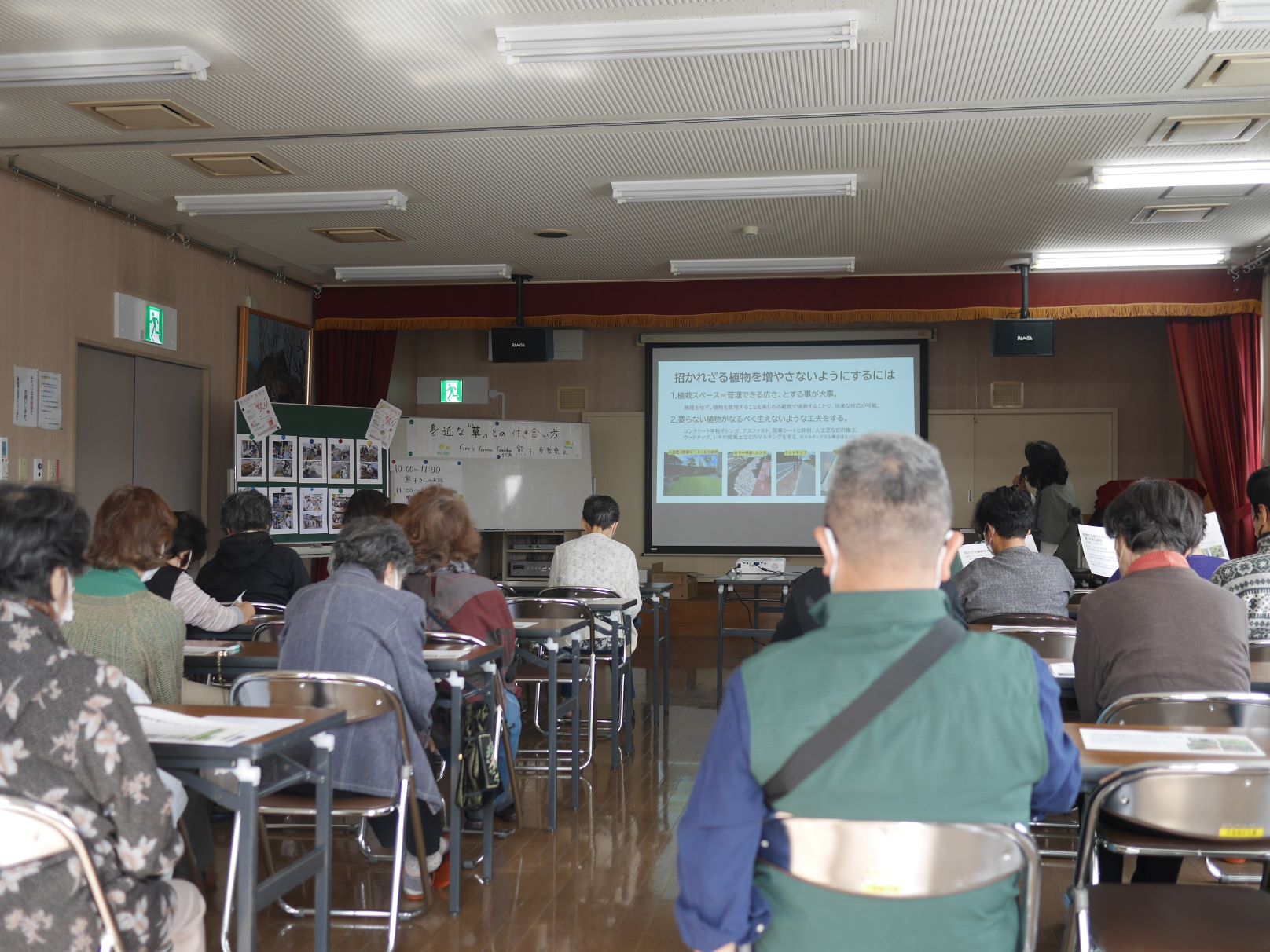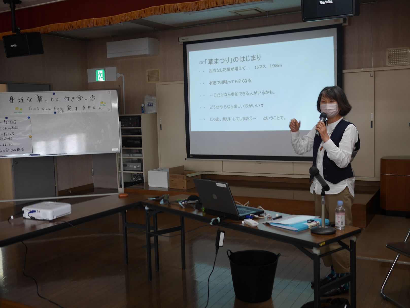 熊木さんの講習会の後に、芸術の森フラワーロードに花を咲かせる会の千葉さんから今年実施した草祭りについての報告もありました。