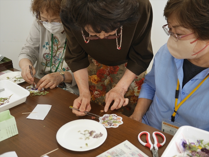 押し花のプロに直接教わり、ランクアップした作品を作ることができて大満足のみなさん。「次はもっときれいな押し花をつくりたい」と来年に向けて意欲的な言葉をおっしゃいました。