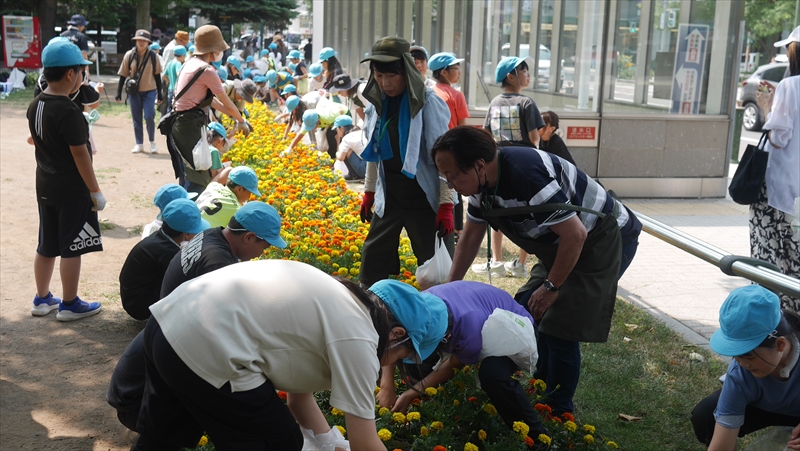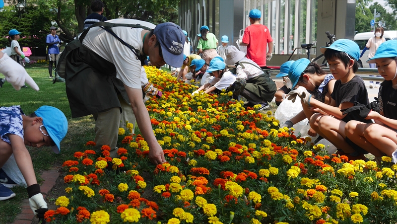 「札幌市内には公園がいくつあるでしょうか?」、「花が大きくなるのに必要なことはなんだろう?」などの設問に答えながらクイズ形式で花の管理について楽しく学びました。