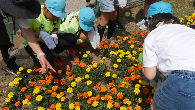 まちづくり体験実習「小学校4年生に花と緑のボランティアを伝えよう」4年生に花壇管理を教えました