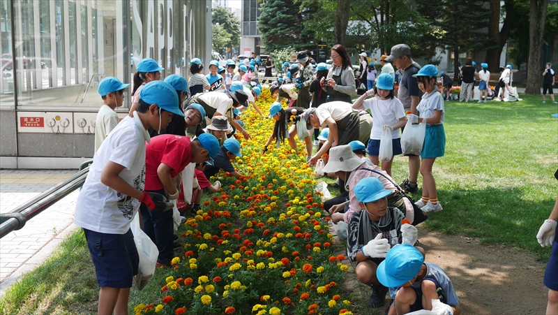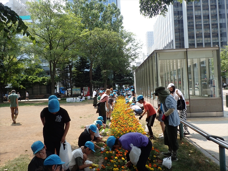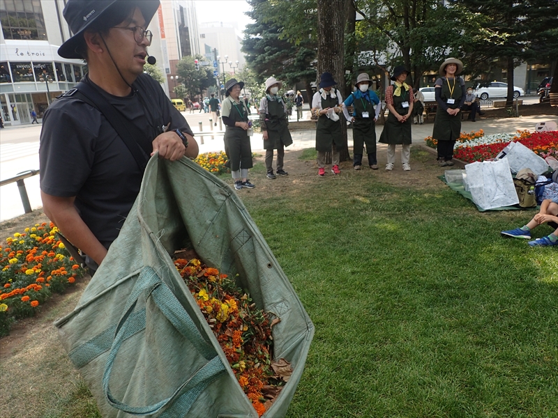 さっぽろタウンガーデナーまちづくり体験実習「大通2丁目花壇」第4回目の実習は、大通公園で花壇管理の講習会と実習を行いました。
