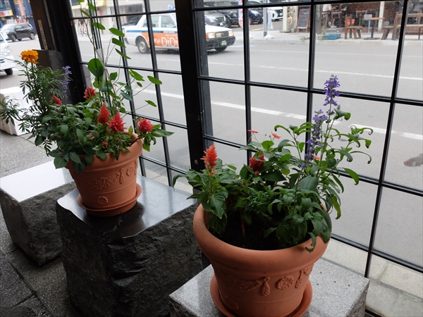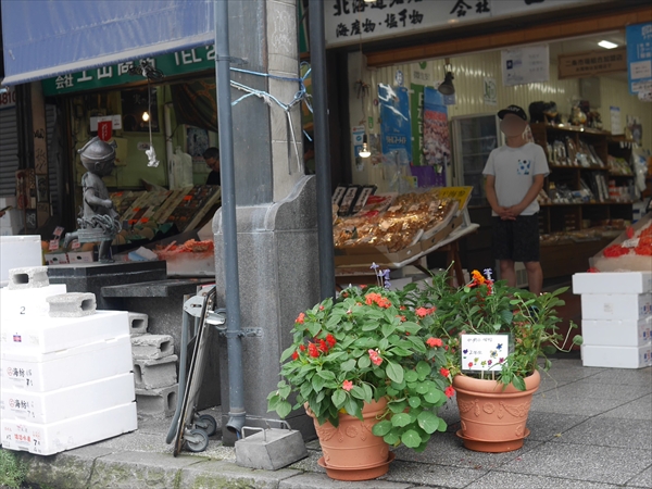 12基のプランターが設置されている札幌二条市場を尋ねました。市場を歩いていると、石の上に置かれているプランターを見つけました。とても大事にされているようでした。