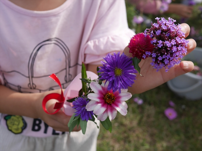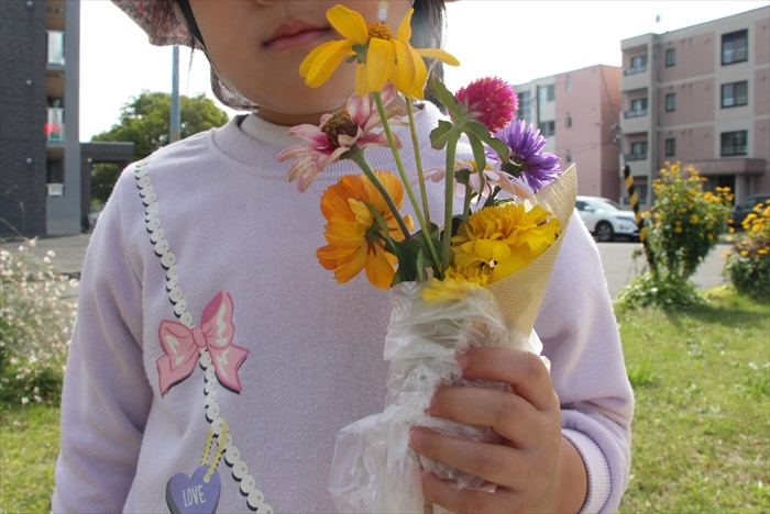 花を持ち帰って誰に渡すか聞いたところ、お母さん、お父さん、おばあちゃん、おじいちゃんのほかにも、いろいろな名前も聞かれましたよ。