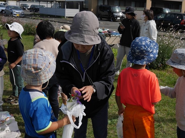 花壇の片付けをする前に風の子保育園の園児が花壇でお花をつむ交流は、今年で3回目になるそうです。