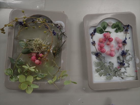 ドライフラワーを並べ、冷やし固めます。