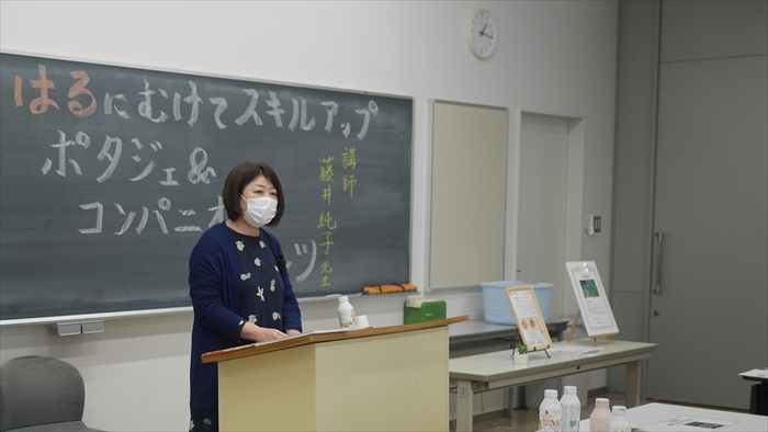 講師は、南区石山でポタジェを作り、ポタジェを広めるための活動をしている、ピュア・ポタジェ代表の藤井純子さんをお迎えしました。