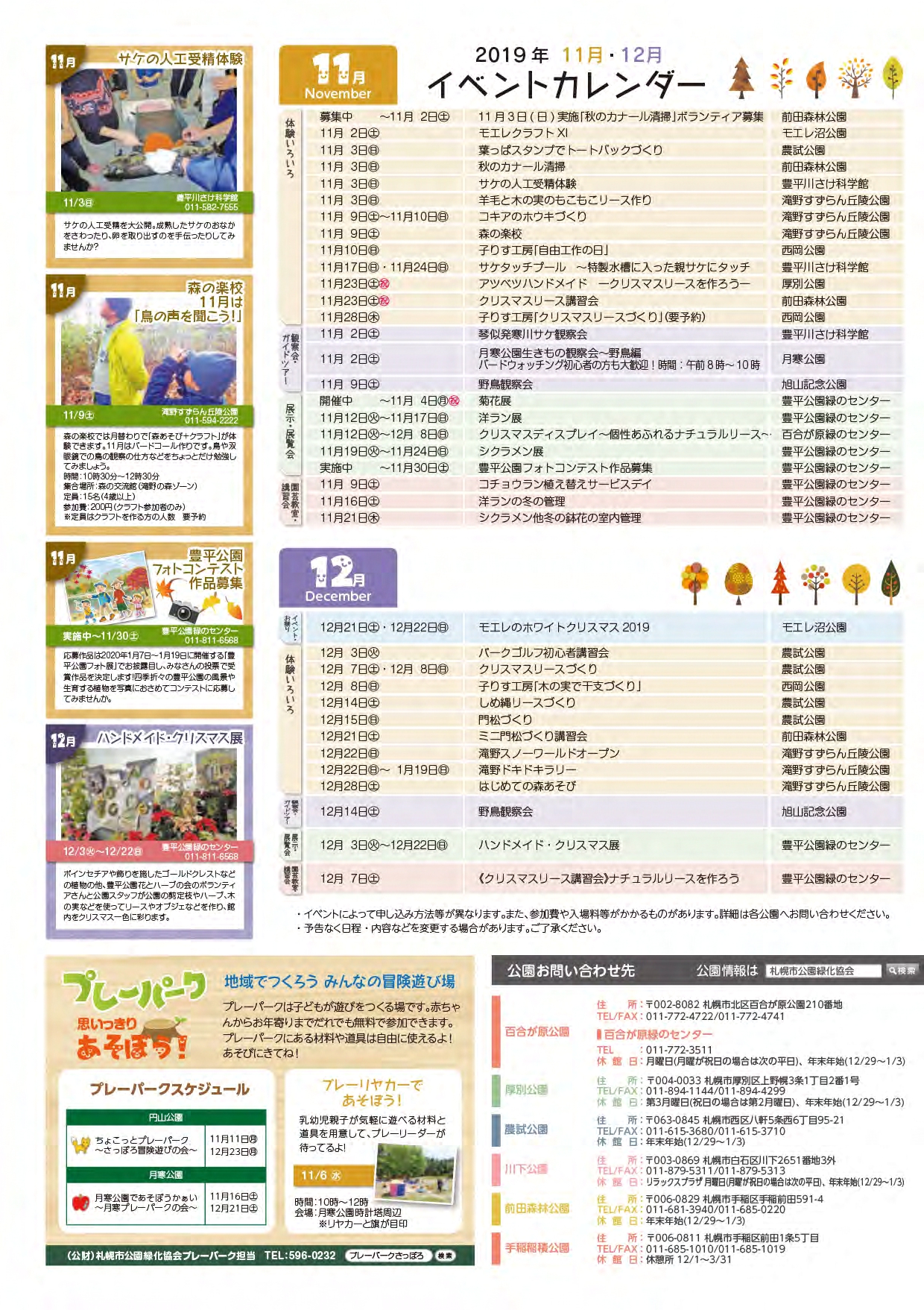 札幌公園だより2019年11~12月号 11~12月イベントカレンダー