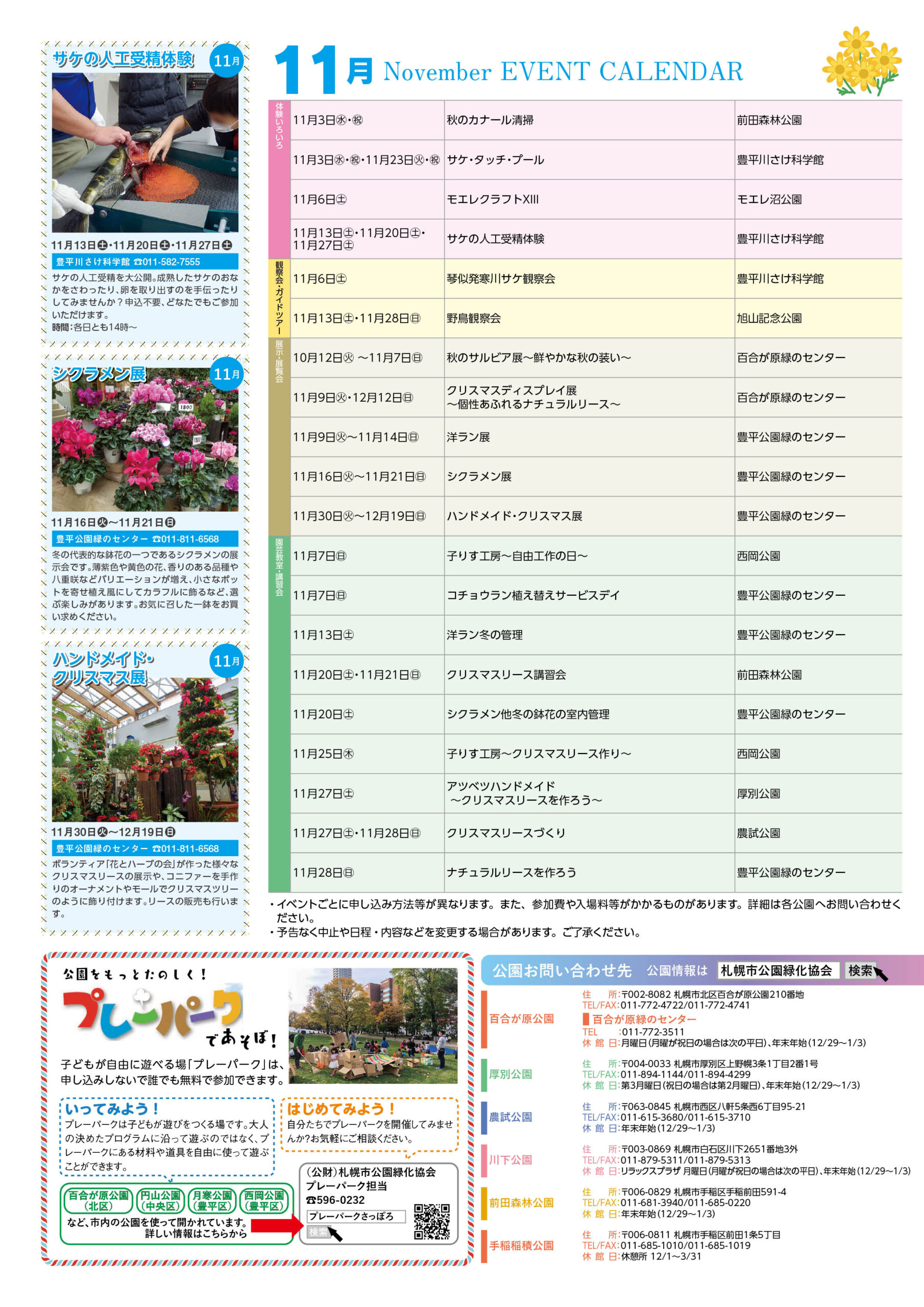さっぽろ公園だより2021年11月・12月号_11月イベントカレンダー