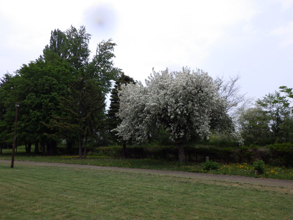 桜が終わり、エゾノコリンゴが真っ白な花を咲かせています。