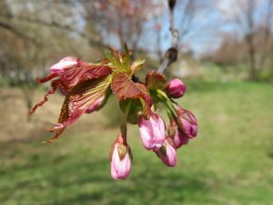 園内では、エゾヤマザクラが少しずつ咲き始めています。