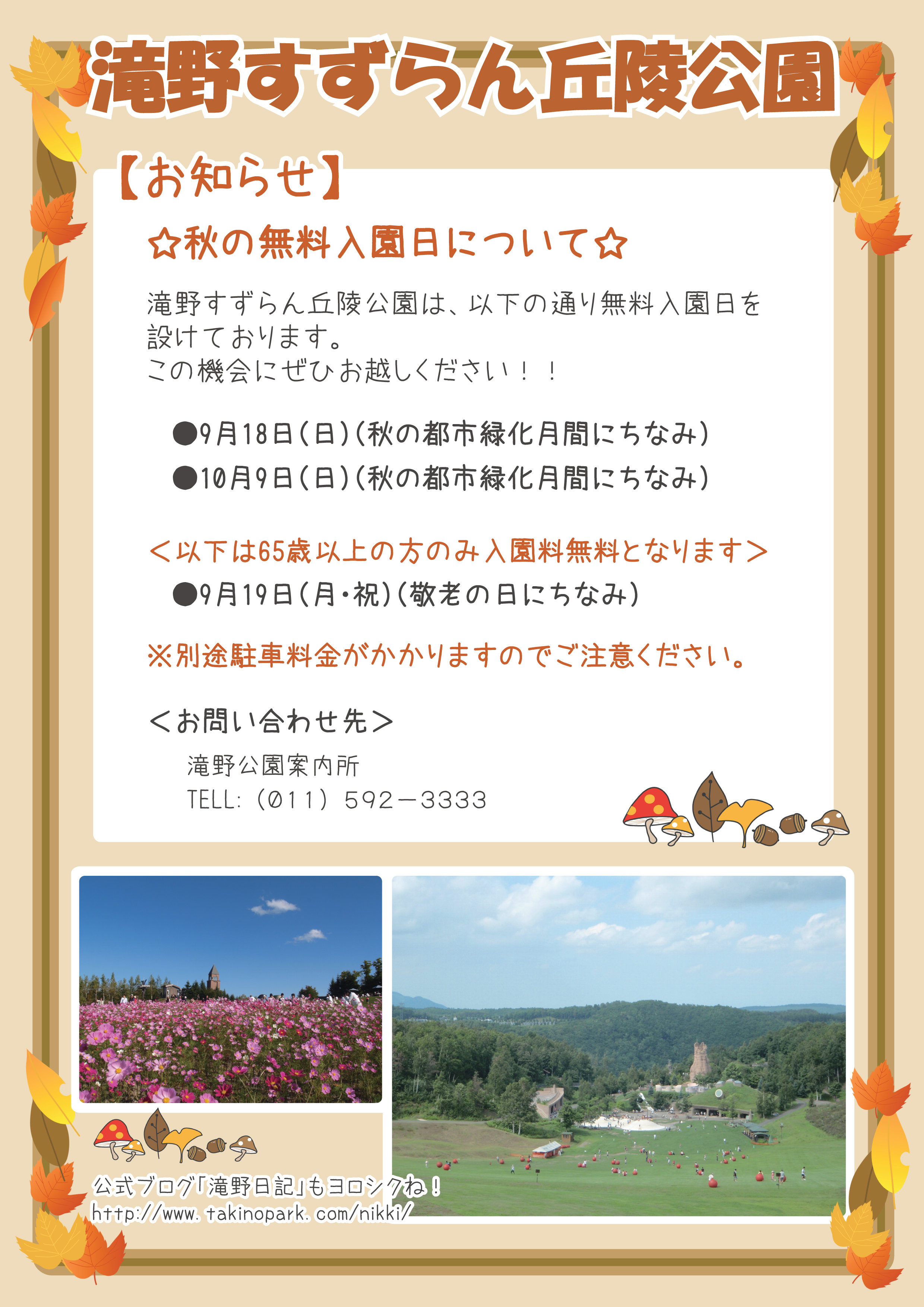 ♪♪滝野すずらん丘陵公園からのお知らせ♪♪