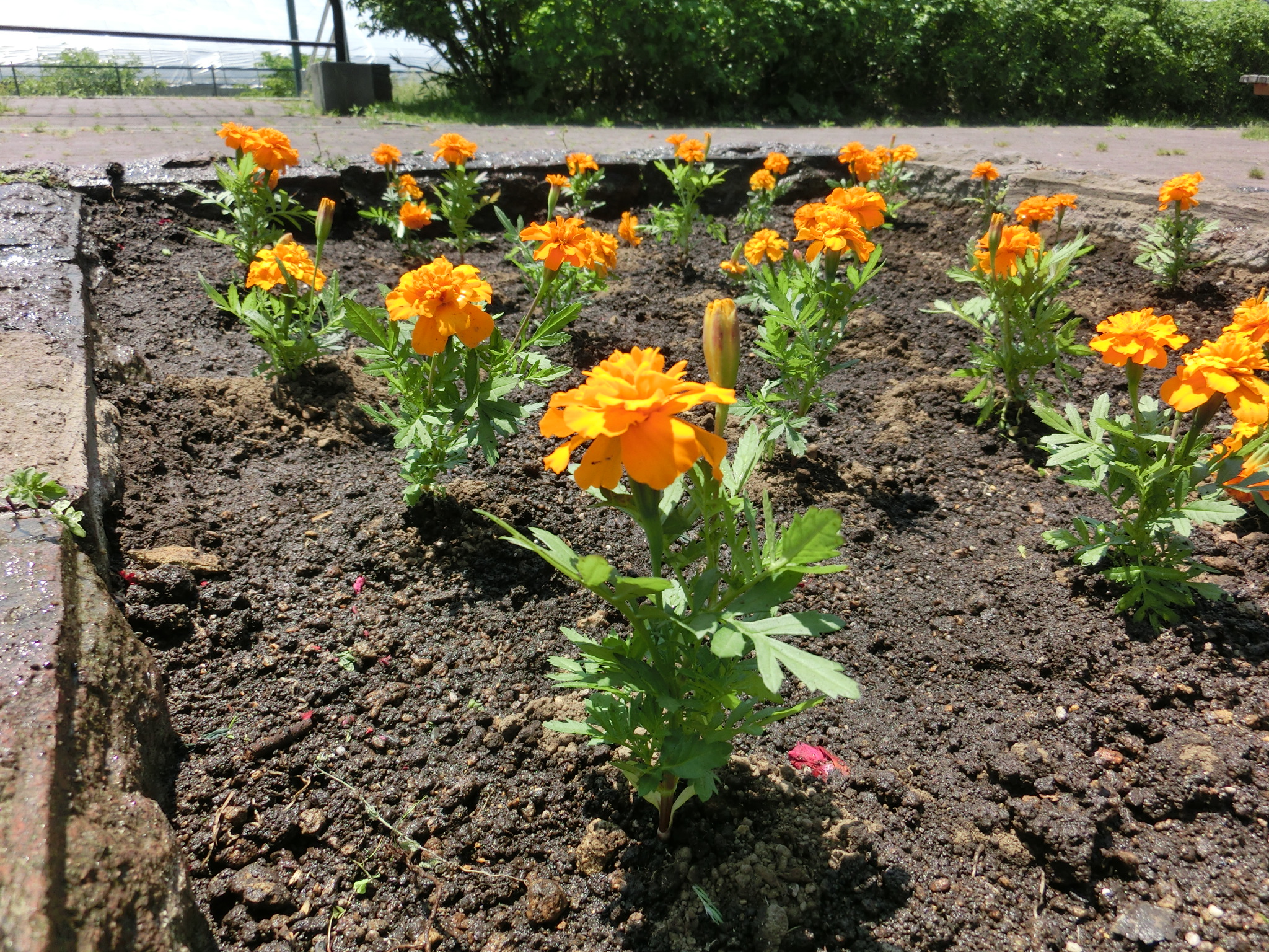 授業の中の実習で、2日で350株のマリーゴールドを植えてくださいました。
