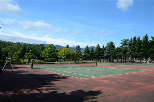 <硬式テニスコート>(2面) 木々の間から山々に見守られているような